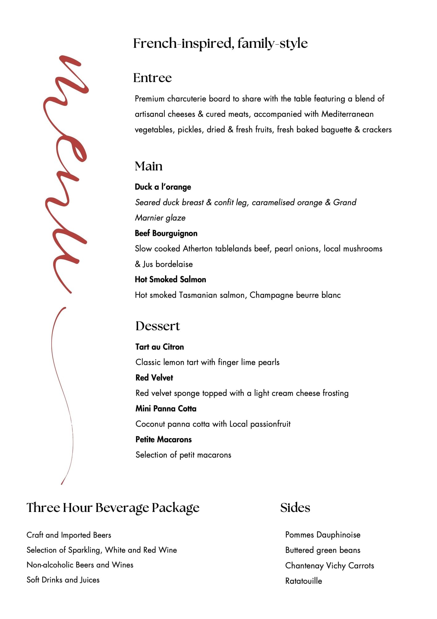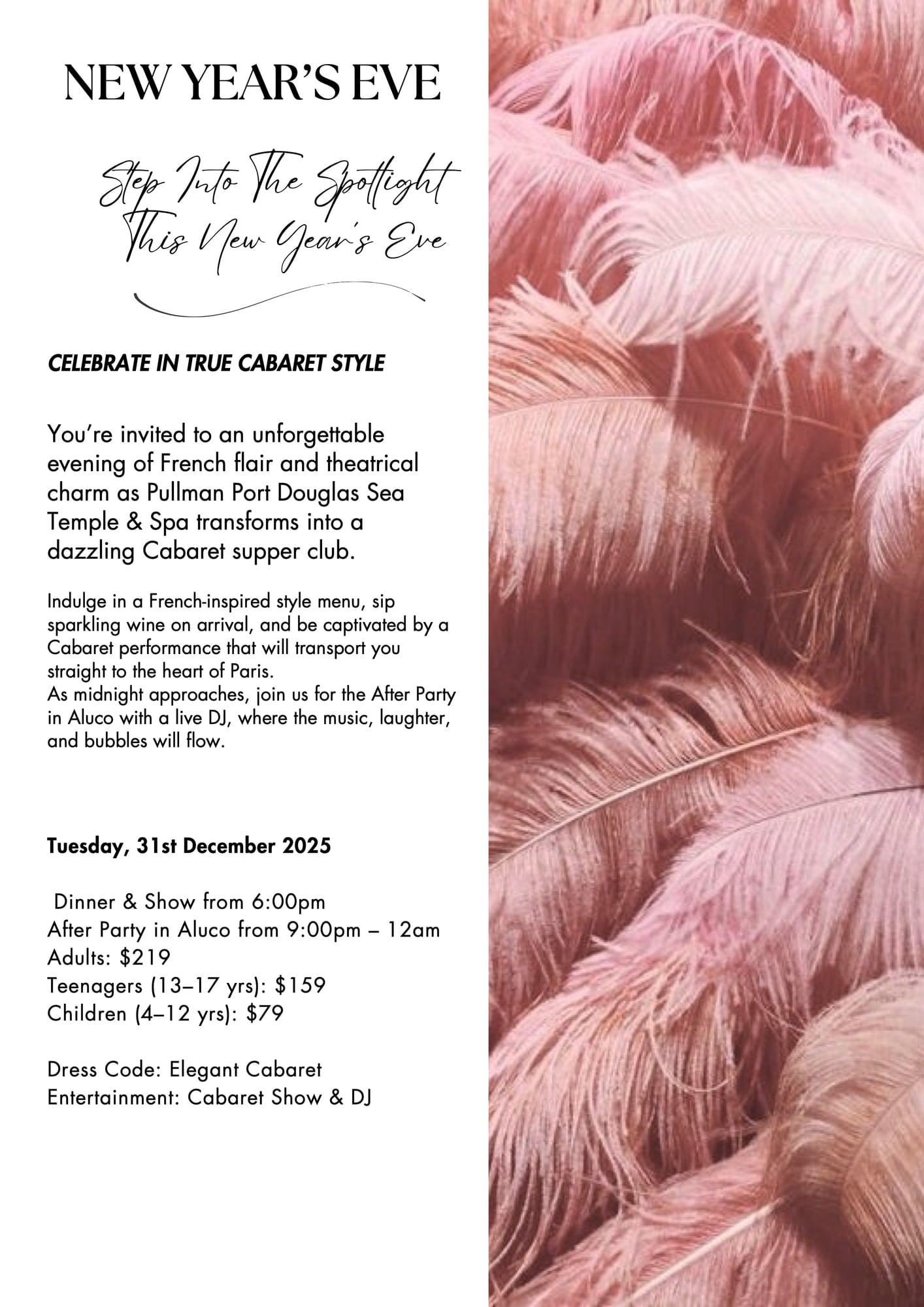 Indulge in a French-inspired style menu, sip sparkling wine on arrival, and be captivated by a Cabaret performance that will transport you straight to the heart of Paris.